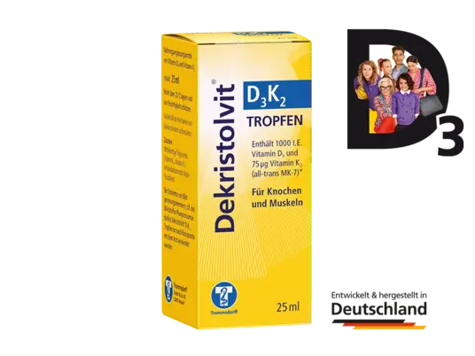 Hinweise: Außerhalb der Reichweite von kleinen Kindern aufbewahren. Bei Einnahme von Blutgerinnungshemmern, z. B. des Wirkstoffes Phenprocoumon dürfen Dekristolvit® D3 K2 Tropfen nur nach Rücksprache mit dem Arzt verwendet werden.